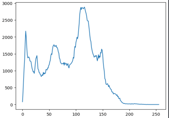 - Para poder visualizar el histograma es necesario el uso de otra biblioteca debido a que este mismo tiene la presentación de una matriz columna, por lo que no permite que se vea como imagen. Por lo tanto la biblioteca que se necesita es matplotlib debido a que la función 'plot' sirve para crear gráficos. Dependiendo del tipo de dato que le demos como argumento, generará diferentes tipos de gráfica.
